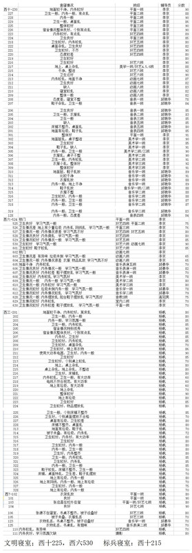 艺术学院第十二周寝室卫生检查情况汇总表