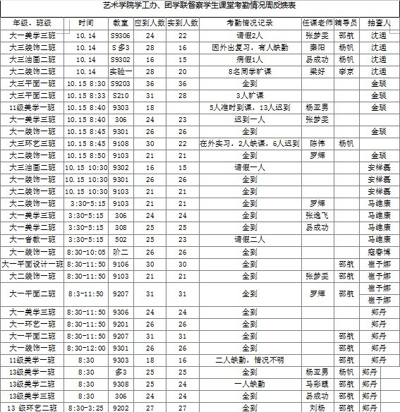 艺术学院学工办、团学联督察学生课堂考勤情况周反馈