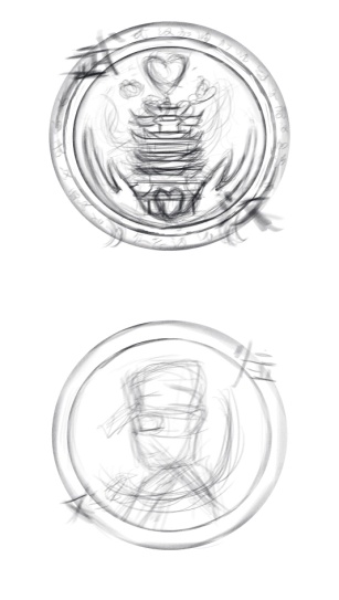 (图15-16为同学在金波院长的号召下为抗击疫情设计的纪念章草图)