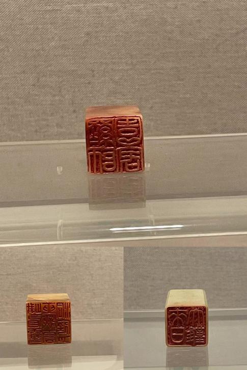 这里陈列的是大千先生的一小部分用印,它们有的是出自张大千之手,有的分别是由方介堪、陈巨来、李尹桑、邓尔雅、寿玺、简经纶、邓散木、顿立夫等著名篆刻家所作。