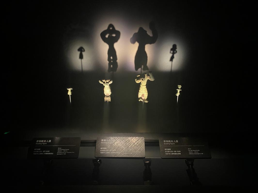 (图为三星堆博物馆内各式青铜小像)