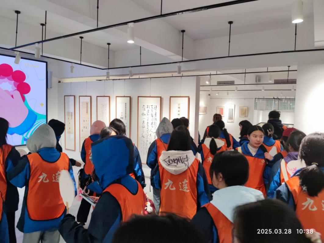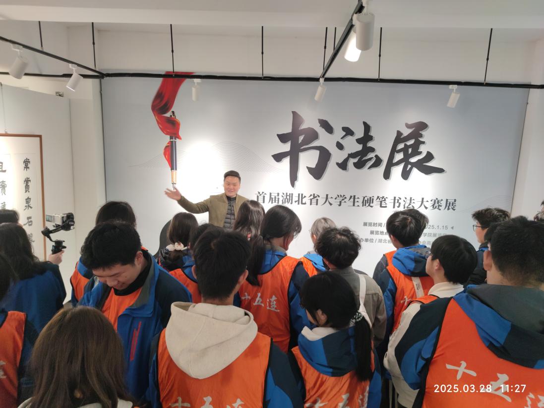在展览馆内,师生们学习观摩了湖北省高校硬笔书法展,领会了书法的艺韵之美。