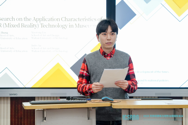 在下午的分会场学术交流环节,张文熠老师以流利的英语进行了题为《混合现实(MR)技术在博物馆中的应用特征研究》(Research on the Application Characteristics of MR Technology in Museums)的演讲。该研究以国家文化数字化战略为背景,深入分析了如何利用Microsoft HoloLens 2等MR设备,创新性地突破传统博物馆导览系统互动单一、空间关联弱的局限。这一研究不仅构建了适应XR特性的博物馆体验评估框架,也为未来智慧博物馆的建设和实现“服务型科普教育”提供了有力的理论支撑。