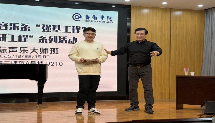 (通讯员 何雨晨)20251222日,湖北第二师范学院艺术学院举行了韩国著名男中音歌唱家崔钟寓教授主讲的声乐大师班。此次活动由音乐系主任韦也纳主持,作为学院“强基助研工程”的重点项目。为深入践行艺术学院师范专业“艺精善教”的精神,强化音乐学专业学生在专业技能中声乐演唱技能的核心竞争力,本次大师班以“一对一”精准指导为核心形式,直面声乐专业教学中的个体化难题,为我院青年教师与学生提供了一次难得的技艺淬炼与境界提升之旅。